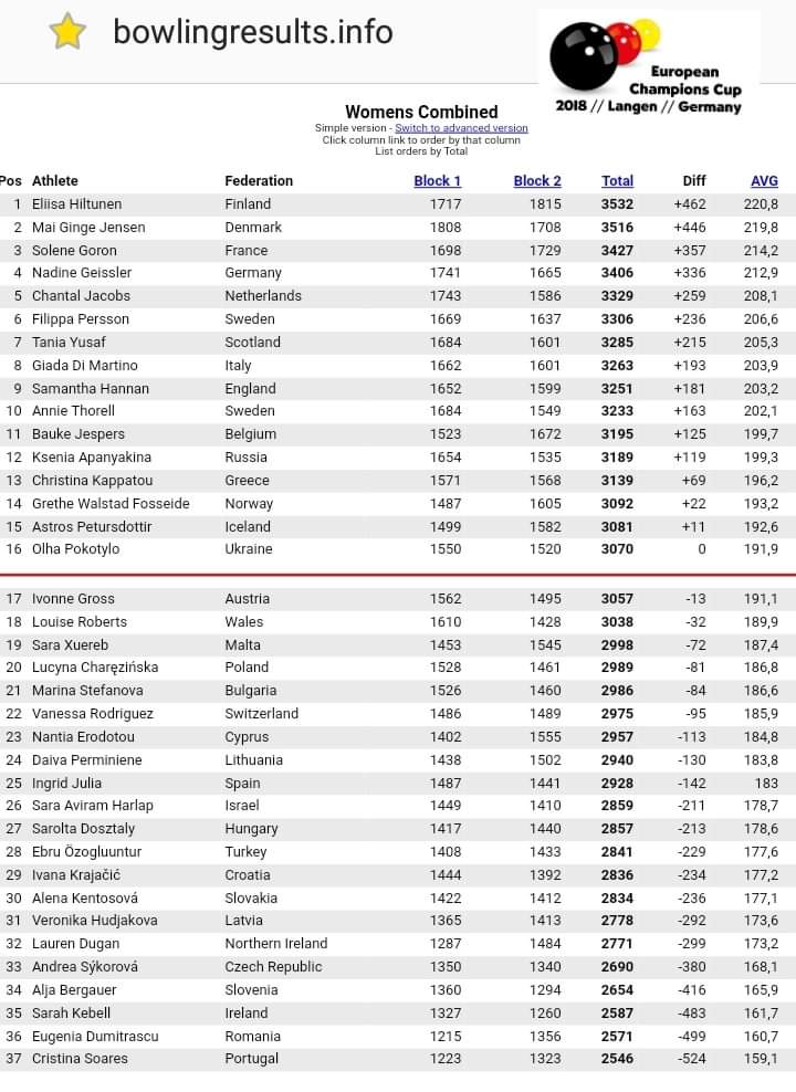 Жінки відіграли 2 блоки кваліфікації і ми з радістю повідомляємо, що Ольга Покотило та Олександр Нечипаєв проходять у ТОП 16 і продовжуть боротьбу за Кубок Європейських Чемпіонів. Ми щиро вітаємо спортсменів з таким чудовим стартом! Сьогодні змагатимуться у ТОП 16 для того щоб вирішити хто попаде у ТОП8. Жінки грають у 10:00, а чоловіки о 14:00 за києвським часом. Бажаеємо спортсменам удачі! Вболівати за наших можна у стрімі або у скорінгу Бажаємо нашим боулерам побільше страйків і звичайно УДАЧІ!!!